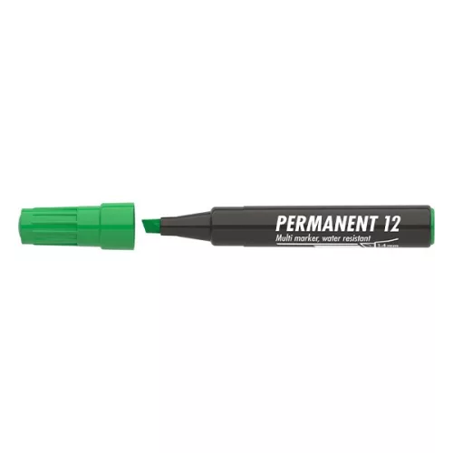 Műanyag, üveg, fém, fa illetve szinte minden felület feliratozására , jelölésére alkalmas, alkoholbázisú festékkel töltött permanent marker. Írásképe száradás után törlés-és vízálló. Vágott csúccsal, klipszes kupakkal. Vonalvastagság: 1-4 mm