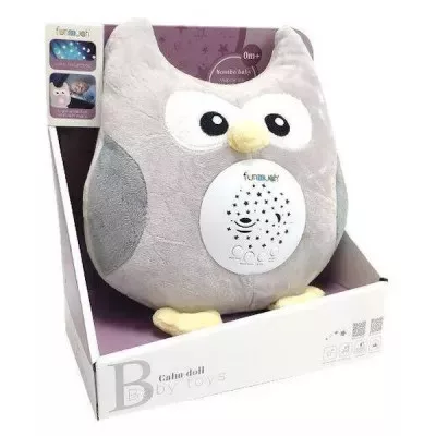 A kis bagoly interaktív játék a gyermekek legjobb alvópartnere. A bagoly hasán a fény lassan váltakozó színekben világít, és csillagokat vetít a szobába.