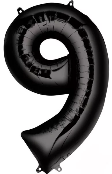 Fekete Black óriás szám fólia lufi 9-es, 86x55 cm