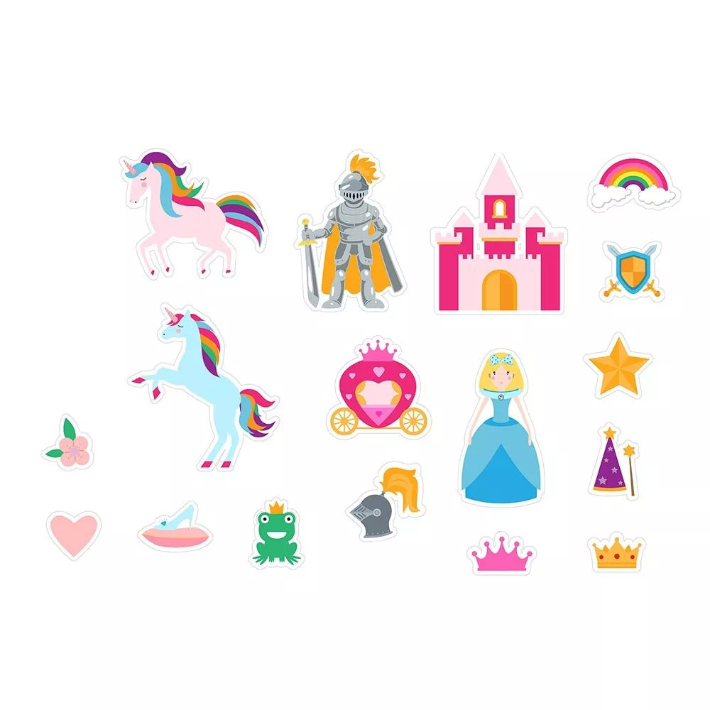 A Buddy & Barney Tapassz a csempére! - Unikornisok játék cuki habszivacs elemekből áll, melyek azért különösen izgalmasak, mert mesés hercegnőt, lovagot és unikornisban gazdag világot lehet velük teremteni. A móka garantált! A készlet elemei könnyen tapadnak csempére vagy a kád falára és játékosan lebegnek a víz felszínén is. A termékhez tapadókorongos tároló zsák is tartozik, hogy könnyebb legyen a szárítás és a tárolás.