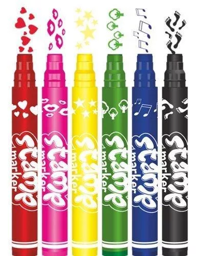 6 élénk szín - 6 különböző bélyeg: szív, száj, csillag, fa, hangjegy, láb. Ideális meghívók, üdvözlőlapok díszítésére.