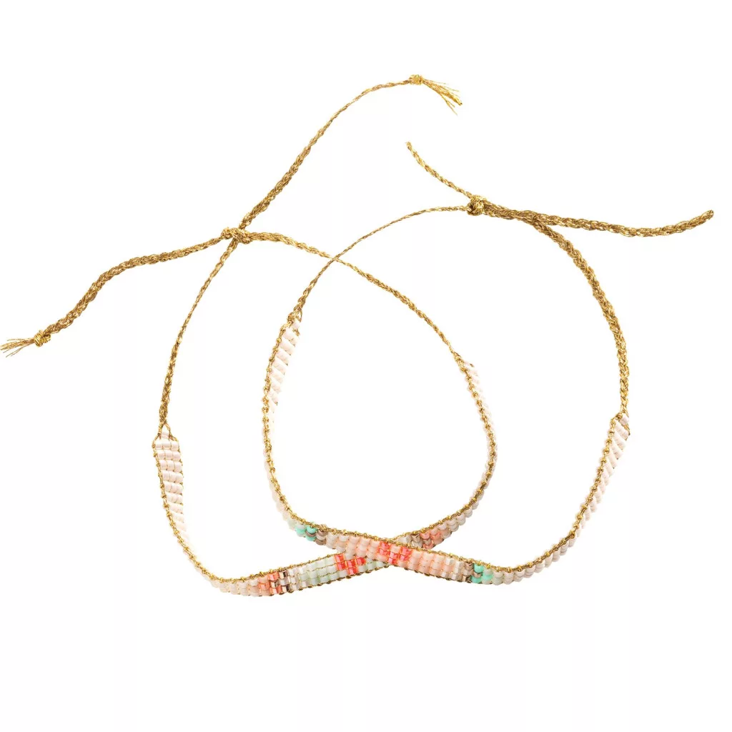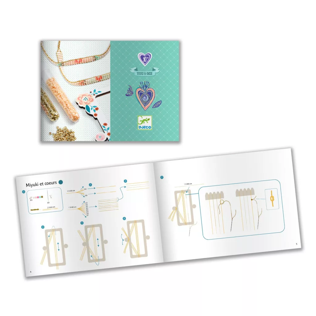 Egy csinos, díszes dobozban, egyedi, szívmedálok és kásagyyöngy nagy választéka van, amikből 2 karkötőt lehet készíteni.A készletben vannak a gyöngyszövéshez szükséges eszközök is. A két csodás ékszer megtartható vagy elajándékozható egy helyes kis organza zacskóban. A mellékelt illusztrál kártyákra jókívánságot is lehet írni,  amely  egy kedves üzenet lehet a megajándékozottnak. Tökéletes ajándék barátnak vagy családtagnak.