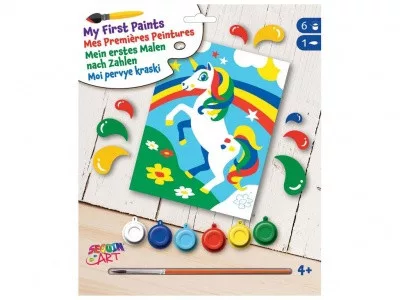 A számos festhető unikornis képet 4 éves kortól ajánljuk. A festhető kép mérete: 18,5 x 25 centiméter.