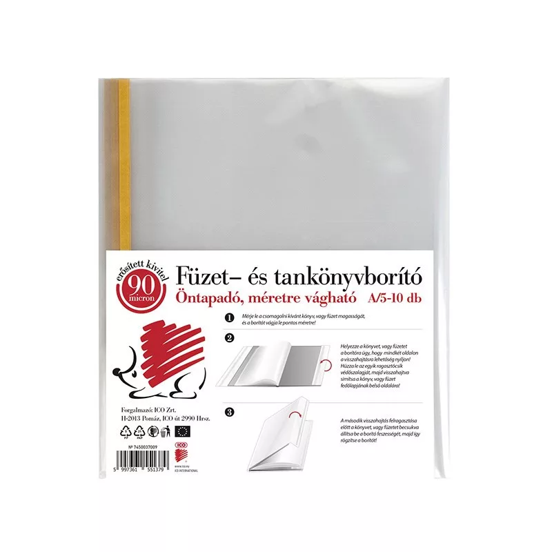 Füzetborító ICO Süni Prémium A/5 öntapadós csíkkal 90 mikron 10 darabos