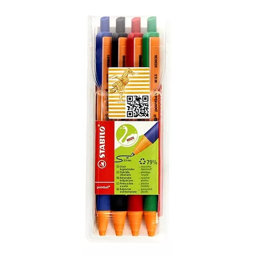 A STABILO egyre nagyobb figyelmet szentel a golyóstoll szegmensre, aminek köszönhetően megalkotta a pointball elnevezésű nyomógombos termékcsaládot, ami 79%-ban újrahasznosított műanyagból készül. A golyóstoll rendkívül lágy tintája és 0.5 mm-es vonalvastagsága gyors, könnyed és kényelmes írást tesz lehetővé. Csúszásmentes fogózónájának köszönhetően pedig egyszerre hosszabb ideig írhatunk vele anélkül, hogy begörcsölne a kezünk. A pointball egy olyan környezetbarát termék, ami mindenki számára prémium minőségű írást biztosít.