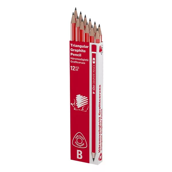 Háromszögletű grafitceruza, B keménység, csíkos ceruzatest.
