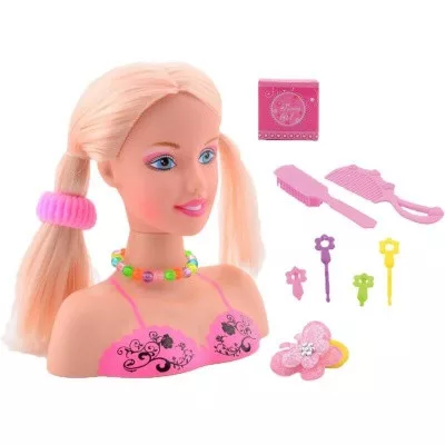 Gyakorold a fodrász és sminkes szakmákat Lily arcán, haján! A Lily fésülhető babafej egy szőke, szép játékbaba feje, amit sminkelhetsz, vagy fésülgethetsz is kedvedre! A haját be tudod fonni, ki tudod fésülni, a baba szemeit, száját is ki tudod húzni sminkekkel, amiket persze könnyedén le is lehet róla törölni. A Lily fésülhető babafej hajkeféket, csatokat is tartalmaz, a játékkal el tudod sajátítani a fodrász és sminkes fortélyokat! Méret: 20 cm.
