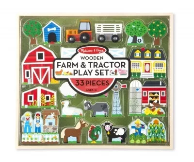 Építsd fel kockáról kockára ezzel a készlettel saját álomvilágodat. A 33 darabos farm témájú készlet, állatokat, épületeket, pótkocsis traktort tartalmaz, amibe pont bele tudod illeszteni és szállítani a farm állatait. A fából készült kis játékelemek csodásan és részletgazdagon díszítettek az egyik oldalukon. Az elemek alkalmasak csoportosításra, számolásra, de még egymásra is pakolhatod őket ezzel is javítva a finom motoros készséget, a számolási ismereteket, a történet elbeszélési képességet és a képzelőerőt. A játékot legizgalmasabban a Mellissa & Doug játékszőnyegén lehet játszani.