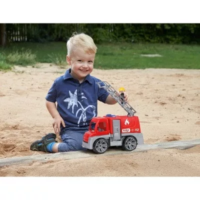 Nagyobb létrás tűzoltóautó, nyitható raktérrel! A Műanyag tűzoltóautó egy fém tengellyel készült, szép kidolgozású tűzoltó autó, emelhető és forgatható létrával. Az autó rakterébe oldalról és hátulról is tudsz tárgyakat tenni, a készlet egy tűzoltó figurát is tartalmaz, akit be tudsz ültetni a vezetőülésbe. A Műanyag tűzoltóautó méretei: 28 x 14 x 19 cm.