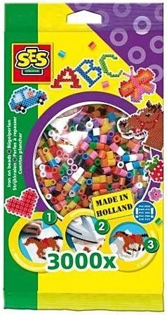 Készíts színes képeket vasalható gyöngyökből! A SES Vasalható gyöngy 3000 darabos készlet műanyag gyöngyöket tartalmaz a szivárvány színeiben, amiket bármilyen vasalható gyöngy készlettel együtt tudsz használni. A gyöngyöket tedd a sablonra, majd tegyél rá vasalópapírt és a forró vasalóval dörzsöld meg, hogy összeolvadjanak! A Vasalható gyöngy 3000 darabos készlet PVC-t nem tartalmaz. Csomagolás méretei: 11 x 22 x 3 cm.