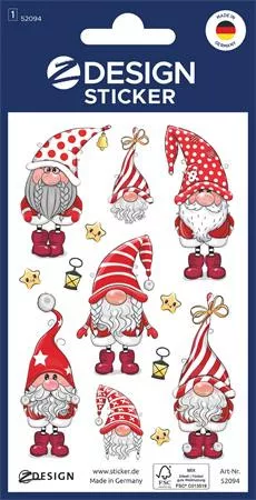 Matrica, papír, 3 ív, 76x120 mm, AVERY ZWECKFORM, "Z-Design No.52094", karácsonyi törpék