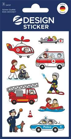 Matrica, papír, 3 ív, 76x120 mm, AVERY ZWECKFORM, "Z-Design No.54137", mentősök, rendőrök, tűzoltók
