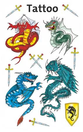 Sárkánytetoválások igazisárkányoktatóknak! Lepd meg a gyermekeidet tüzes sárkánytetoválásokkal! Tökéletes ajándék, amely kiváló meglepetés lehet születésnapi partikra vagy egyszerűen a játék kedvéért.
