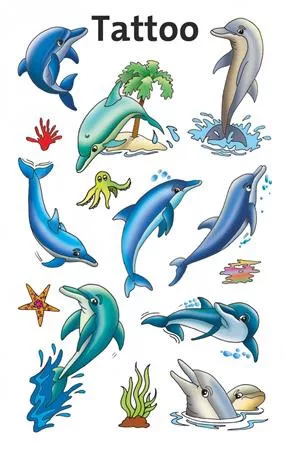 Matrica, tetoválás, 1 ív, 76x120 mm, AVERY ZWECKFORM, "Z-Design No.56439", delfinek tengeri csillagokkal