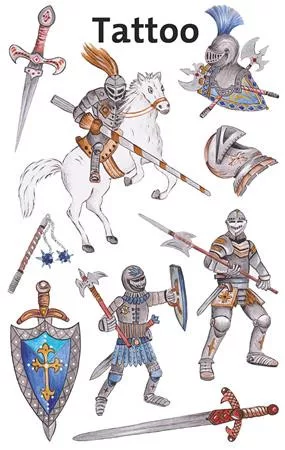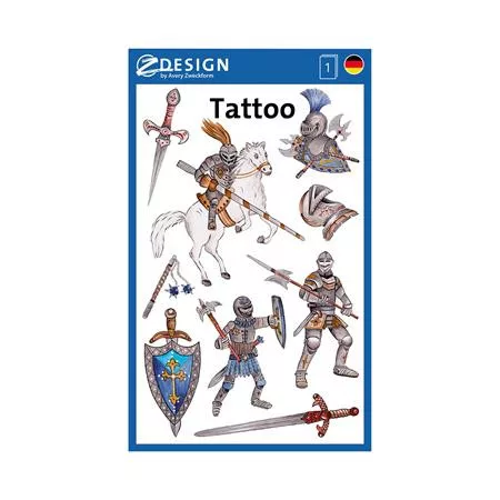 Matrica, tetoválás, 1 ív, 76x120 mm, AVERY ZWECKFORM, "Z-Design No.56739", lovagok