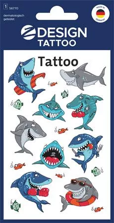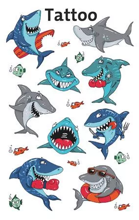 Fél a cápáktól? Szelídítse meg őket, és tetoválja őket a bőrére – persze nem igazából, mégis megtévesztően valódinak tűnnek. A pimasz cápa tetoválásokkal mindenkinek lehet kedvenc cápája! Lepje meg gyermekeit fantasztikus tetoválásokkal, amelyek tökéletesek ajándéknak, meglepinek, születésnapi bulikra vagy egyszerűen egy közös játékhoz a gyerekeknek.