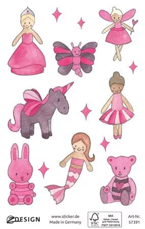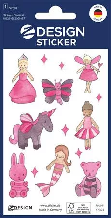 Matrica, papír, 1 ív, 76x120 mm, AVERY ZWECKFORM, "Z-Design No.57391", rózsaszín tündér világ
