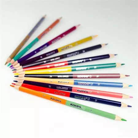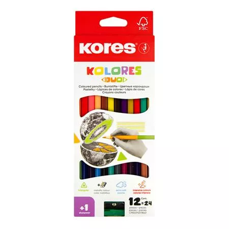 Színes ceruza készlet, kétvégű, háromszögletű, KORES "Duo", 24 különböző szín