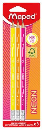 Grafitceruza radírral, HB, háromszögletű, MAPED "Black`Peps Neon", vegyes színek