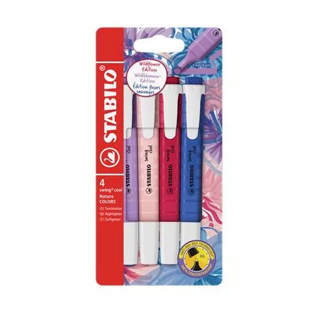 A STABILO swing cool NatureCOLORS Wildflower szövegkiemelő ideális eszköz klasszikus szövegkiemeléshez és kreatív felhasználáshoz egyaránt. Azok számára, akik szeretnék az enteriőr- és divattervezés világából ismert trendi árnyalatokat beépíteni írószereikbe, a STABILO swing cool NatureCOLORS Wildflower tökéletes választás.