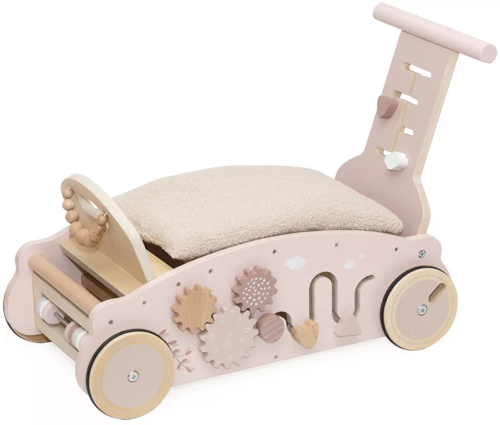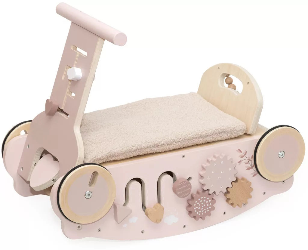 A Label Label 3 az 1-ben Hintaló, Járássegítő és Kismotor nemcsak tartós és minőségi fából készült, hanem a letisztult, modern dizájnja révén a gyerekszoba igazi dísze is. A finom, rózsszín színek és a lekerekített formák minden apró részlete gondoskodik arról, hogy a játék biztonságos és hívogató legyen a legkisebbek számára is.