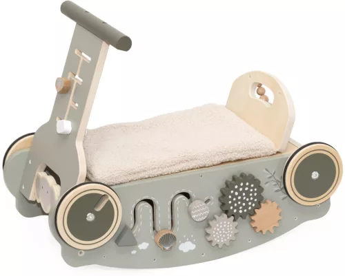Amikor eljön az idő, hogy a gyerkőc megtegye az első bizonytalan lépéseket, a hintaló könnyedén átalakítható stabil, biztonságos járássegítővé. A masszív fa szerkezet és a kerekek segítenek nekik, hogy magabiztosan, lépésről lépésre fedezzék fel a világot. A járássegítő nemcsak a mozgásfejlődést segíti, de önbizalmat is ad nekik, ahogy egyre távolabb merészkednek.