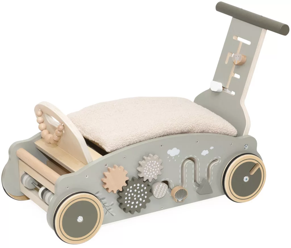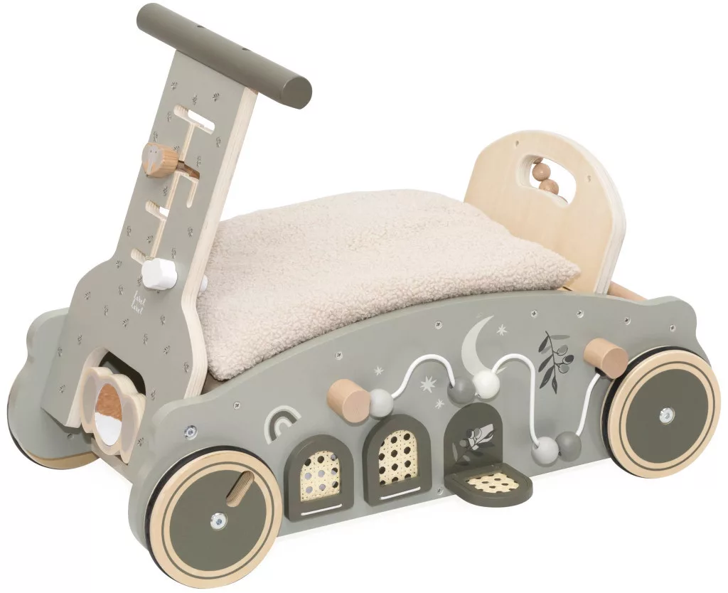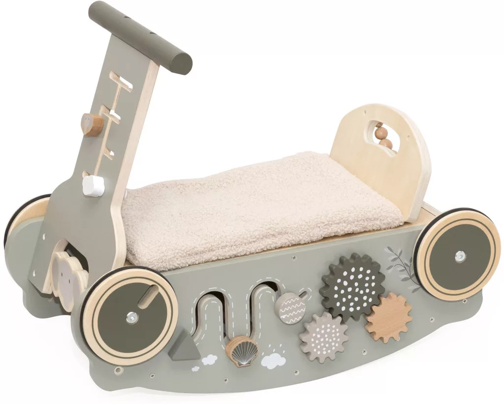 Kezdetben hintalóként fejleszti az egyensúlyérzéket, majd stabil járássegítővé alakul az első lépésekhez. Végül gurulós autóként biztosít önfeledt szórakozást és önálló mozgást.