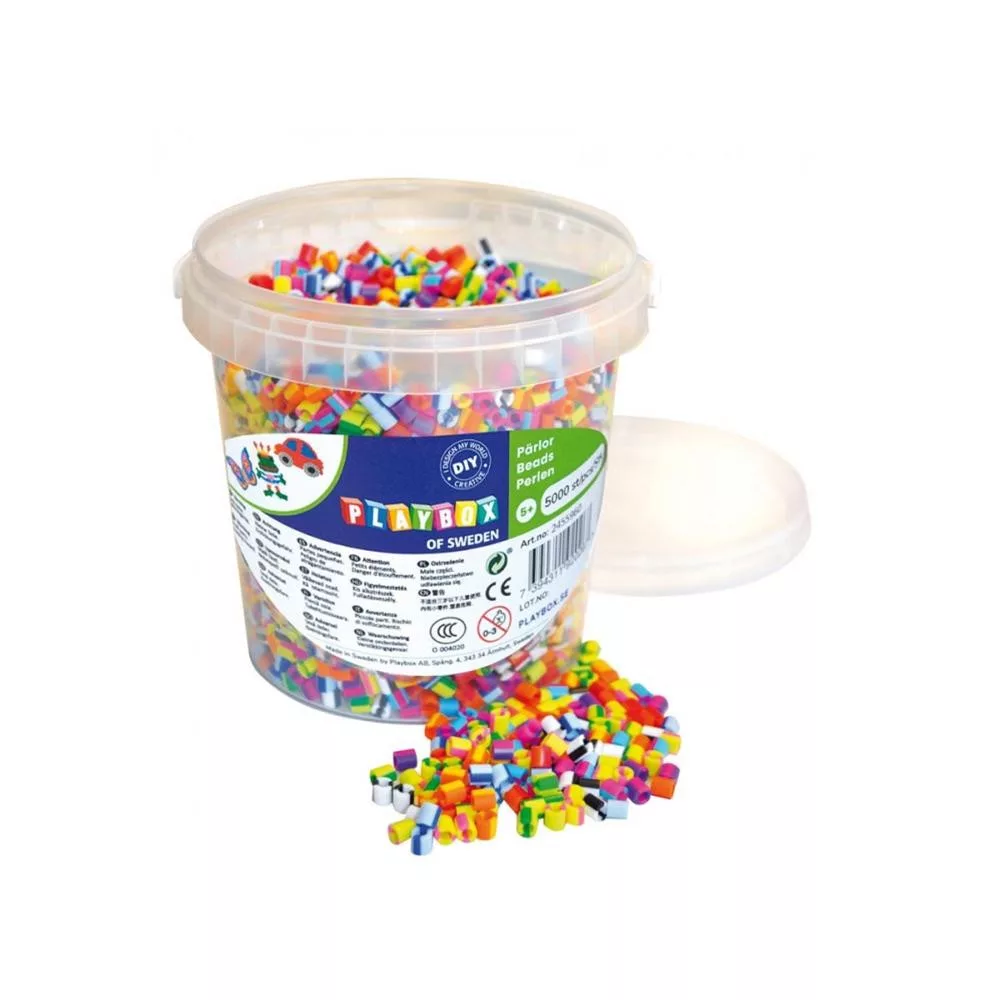 Playbox Vödör vasalható gyöngyökkel, 5000 db, csíkos