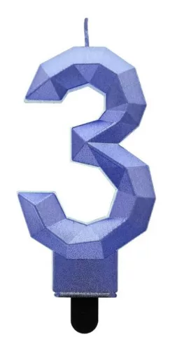 Diamond Blue Metallic, Kék számgyertya, tortagyertya 3-as
