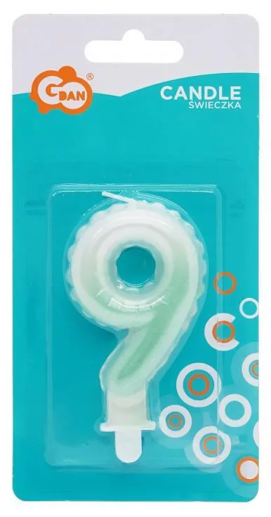 Fehér-Zöld 9-es Ombre számgyertya, tortagyertya