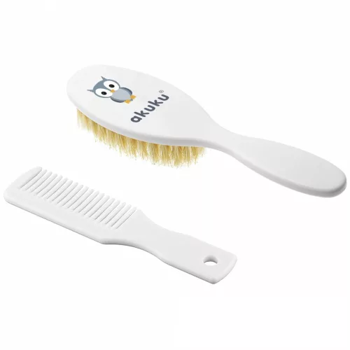 Akuku fésû és kefe természetes sörtékkel Bagoly fehér
