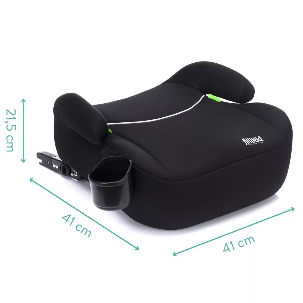 A Fillikid i-Size ülésmagasító a legújabb i-Size ECE-R129 biztonsági szabvány szerint homologizált, 125 cm és 150 cm közötti gyermekek számára. Ezt az autósülést szigorú feltételek mellett tesztelték, és könnyen beszerelhetõ az autóba. Az ISOFIX csatlakozóknak köszönhetõen az ülésmagasító egyetlen kattintással rögzíthetõ.Az ülésmagasító az autóba ISOFIX és a jármû biztonsági öveivel vagy csak a jármû biztonsági öveivel szerelhetõ be.– 125 cm és 150 cm közötti gyermekek számára készült– ECE-R129 szerint tesztelve– anatómiailag kialakított ülés– az italtartó az autósülés része– kényelmes párnázott huzat– levehetõ és mosható huzatMérete: 41 x 41 x 21,5cm