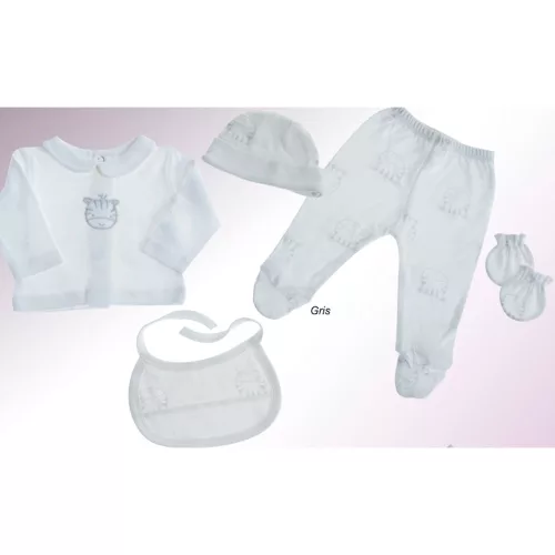 Gamberritos kiegészítõ szett újszülötteknek 5 részes (sapka, kesztyû, nadrág, póló, elõke) szürke 10911