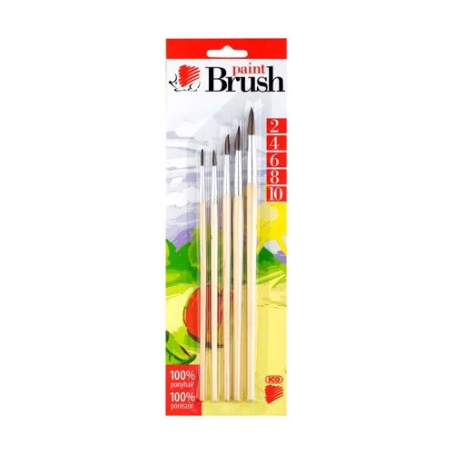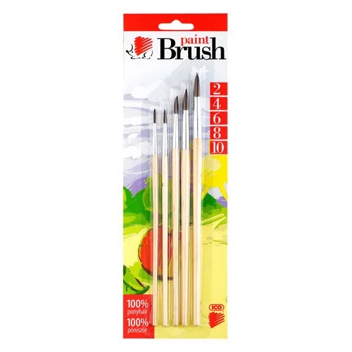 Ecsetkészlet Ico póniszőr fanyelű 5 db-os klt. 2/4/6/8/10 natúr