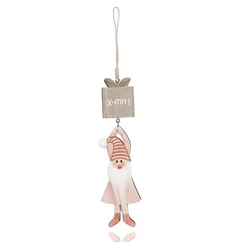 Karácsonyi akasztós 6x22 cm fa Mikulás Xmas felirat