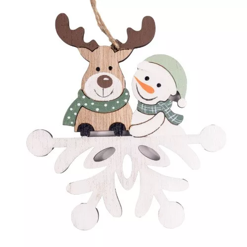 Karácsonyi dekor dísz fa akasztós 12x11 cm hóember és rénszarvas