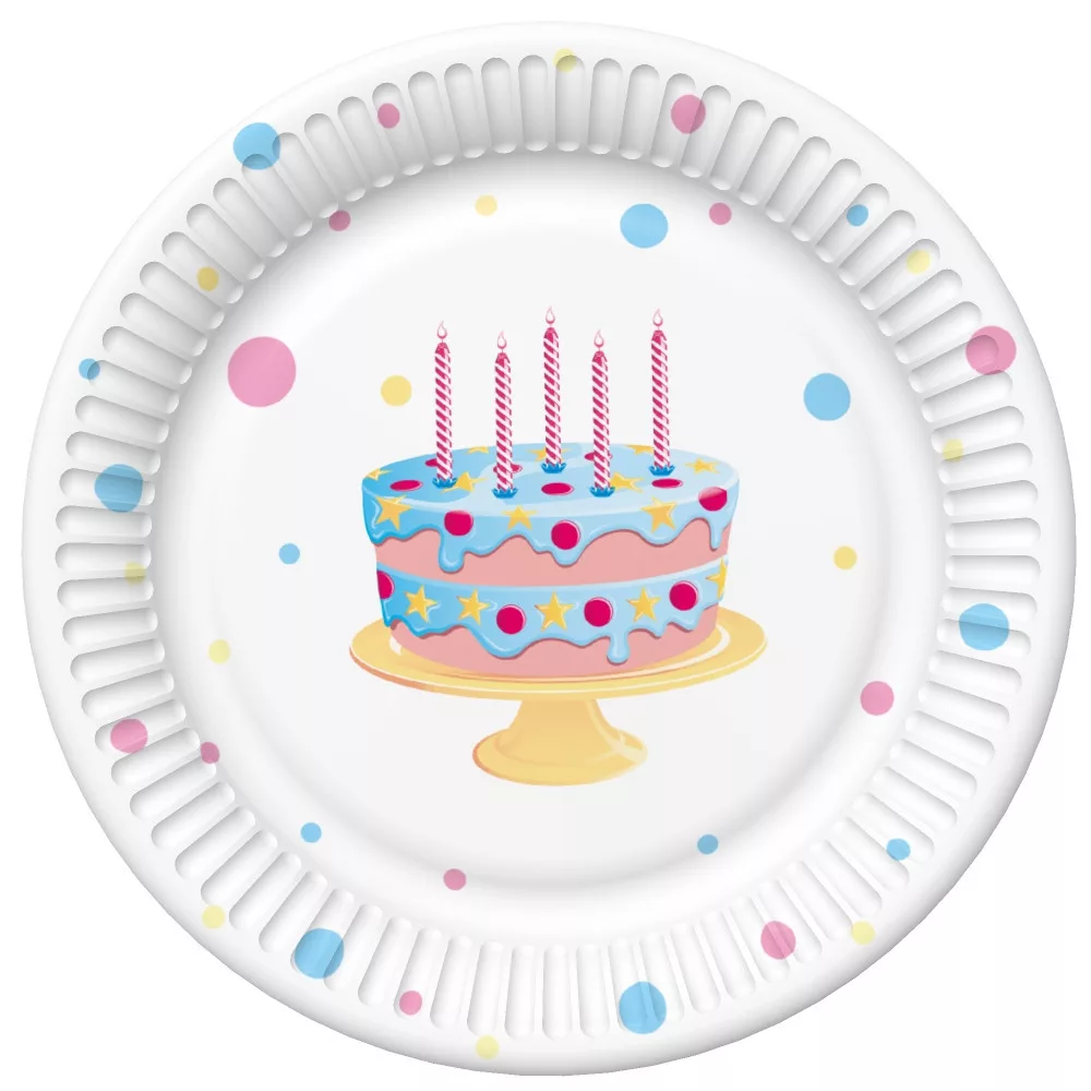 Happy Birthday Cake with Balloons papírtányér 8 db-os 18 cm