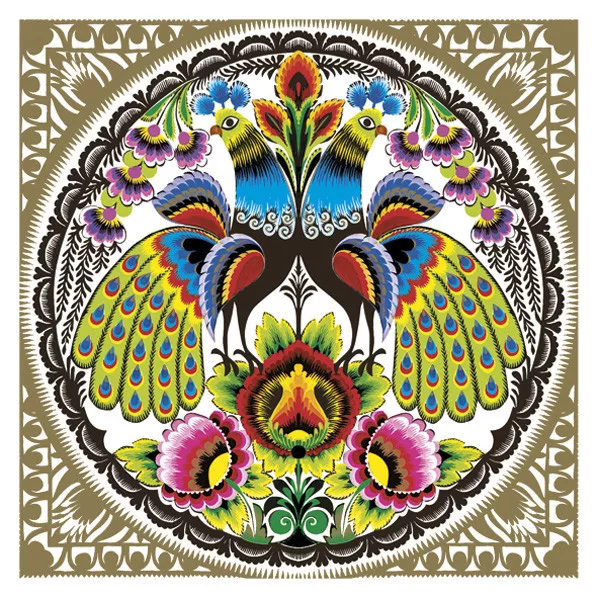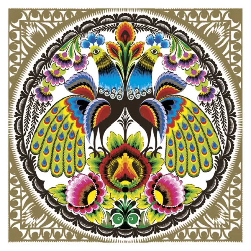 Állatos Folk Peacocks Gold szalvéta 20 db-os 33x33 cm