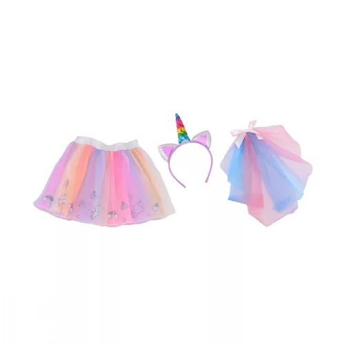 A csomag tartalma: szoknya, tiara unikornis szarvval, unikornis farok.