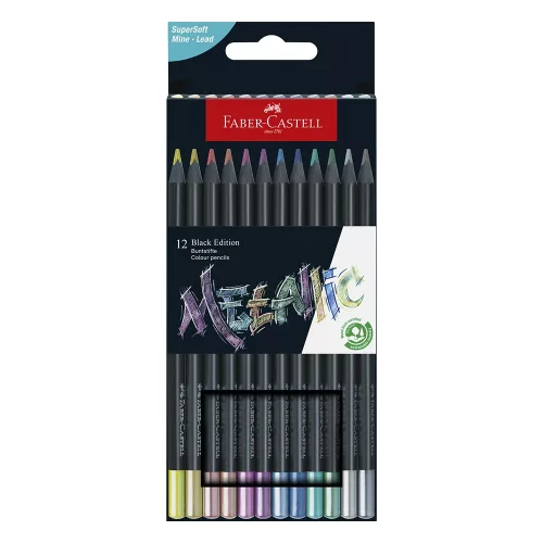Színes ceruza FABER-CASTELL Black Edition háromszögletű fekete testű metál 12 darabos