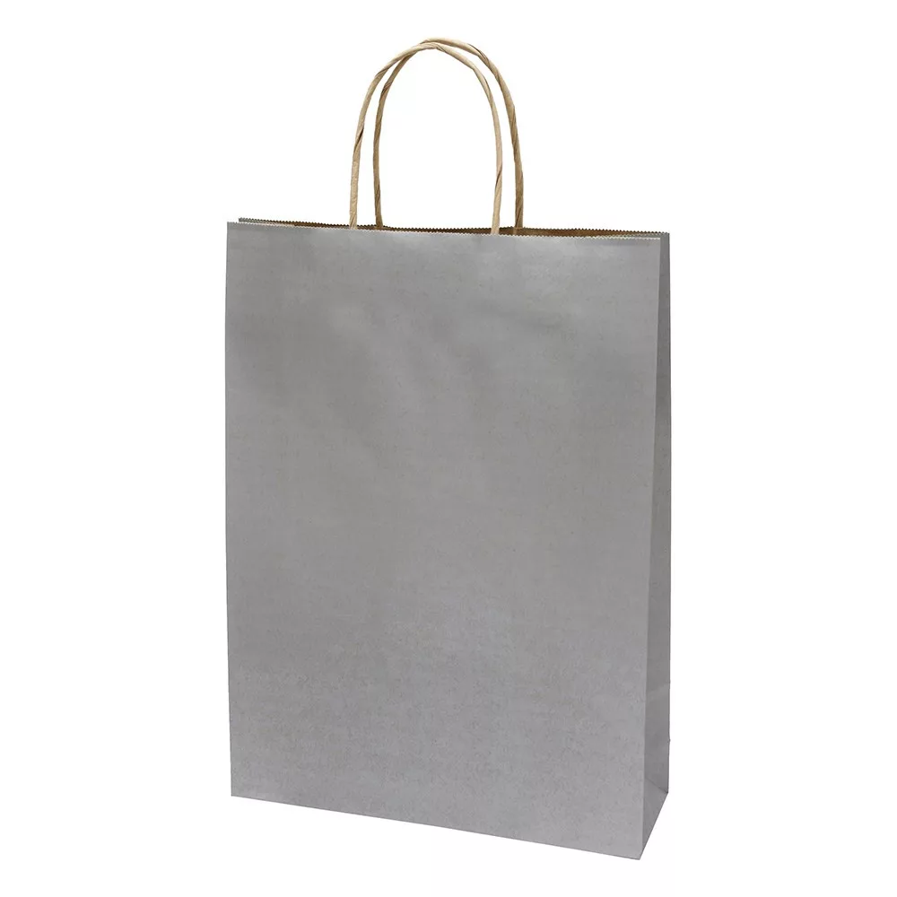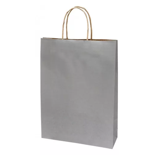Dísztasak CREATIVE Classic Simple L 26x35x8 cm kraft egyszínű ezüst sodort füles