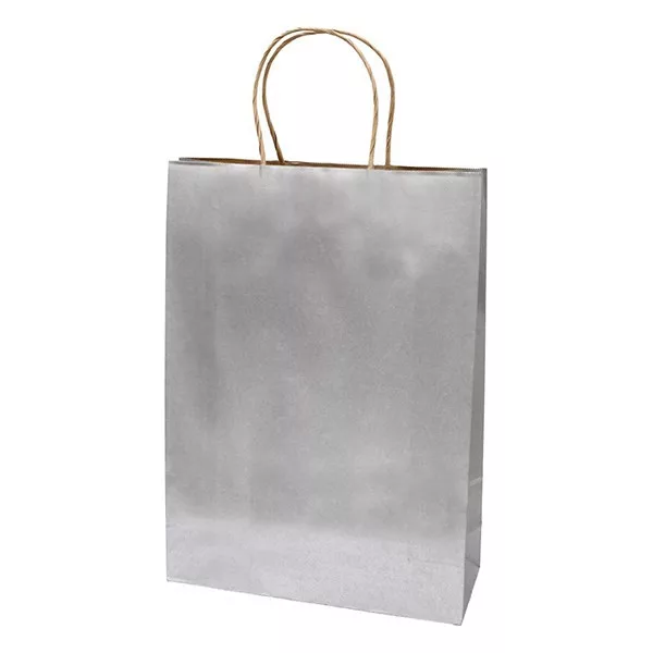 Dísztasak CREATIVE Classic Simple XL 31x42x11 cm kraft egyszínű ezüst sodort füles