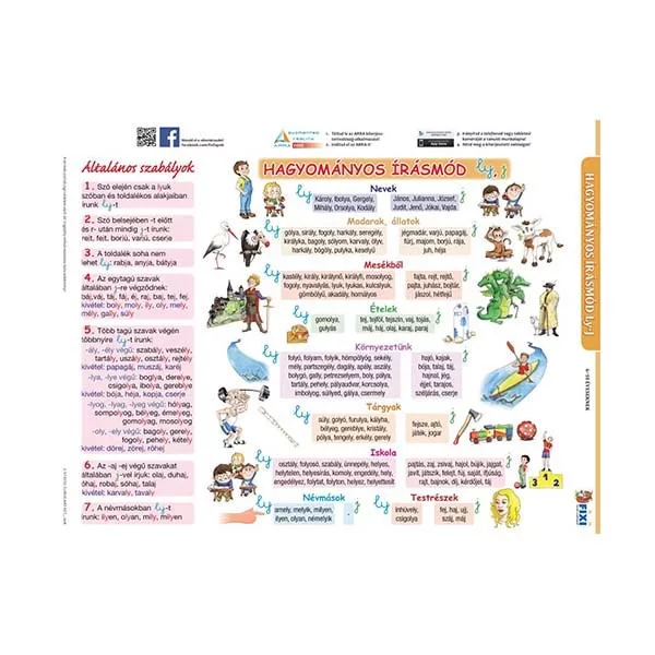 A magyar nyelv egyik legnehezebben megtanulható szabályához nyújt gyakorlati segítséget ez a munkalap. Javasoljuk otthoni és órai gyakorláshoz is. Az egyik oldalon képekkel illusztrált szószedet, megjegyezhető szabályok, a másik oldalon gyakorlási lehetőség segíti a megtanultak rögzülését.
